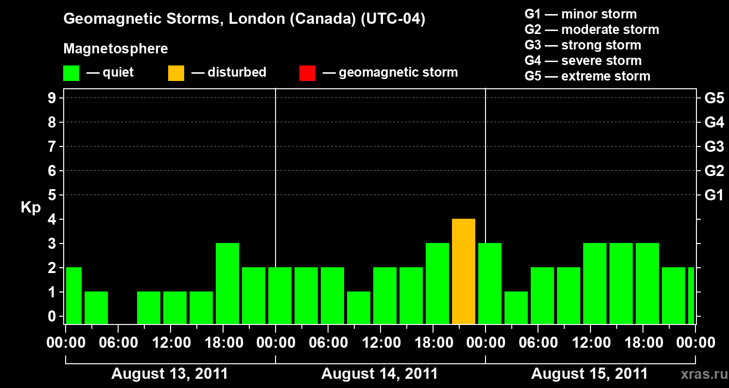 Geomagnetic storms in London (Canada) — Aug 15, 2011