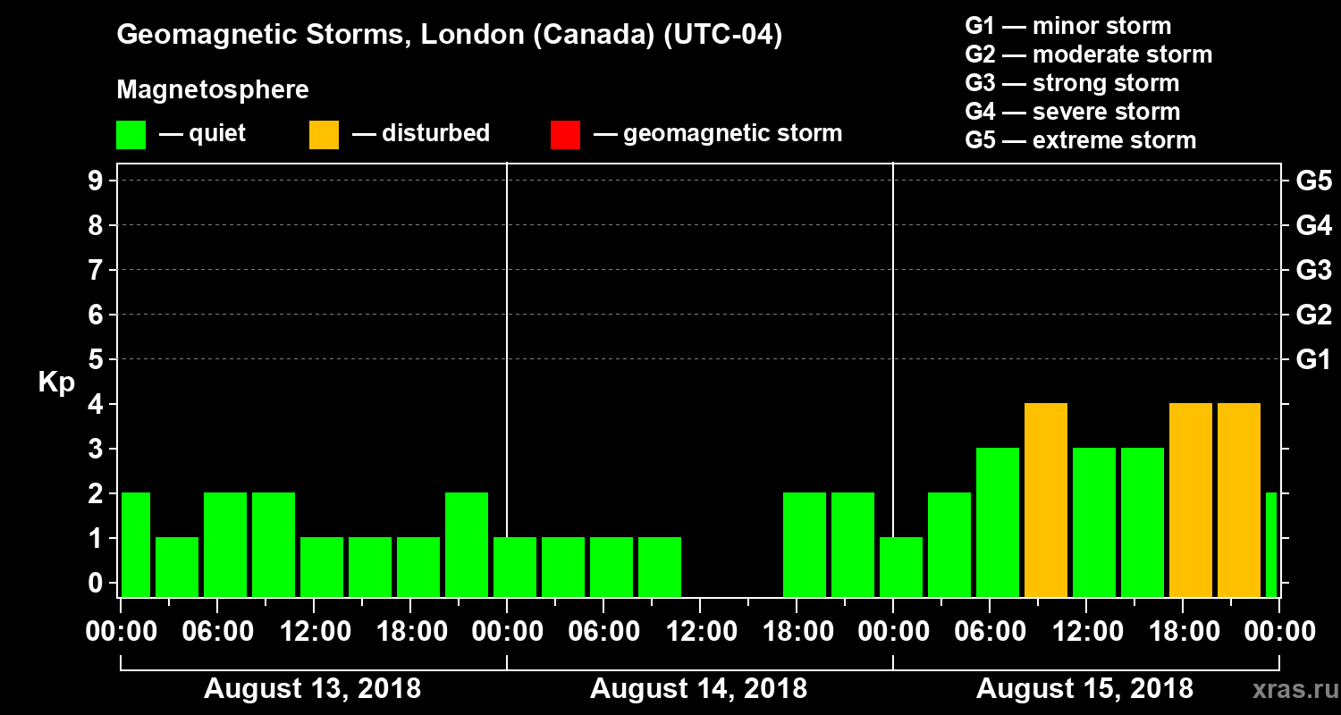 Geomagnetic storms in London (Canada) — Aug 15, 2018