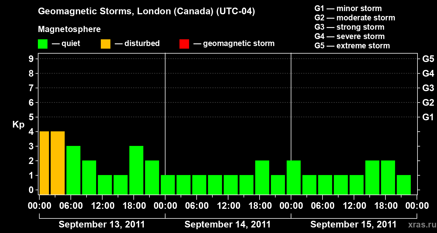 Geomagnetic storms in London (Canada) on Sep 15, 2011