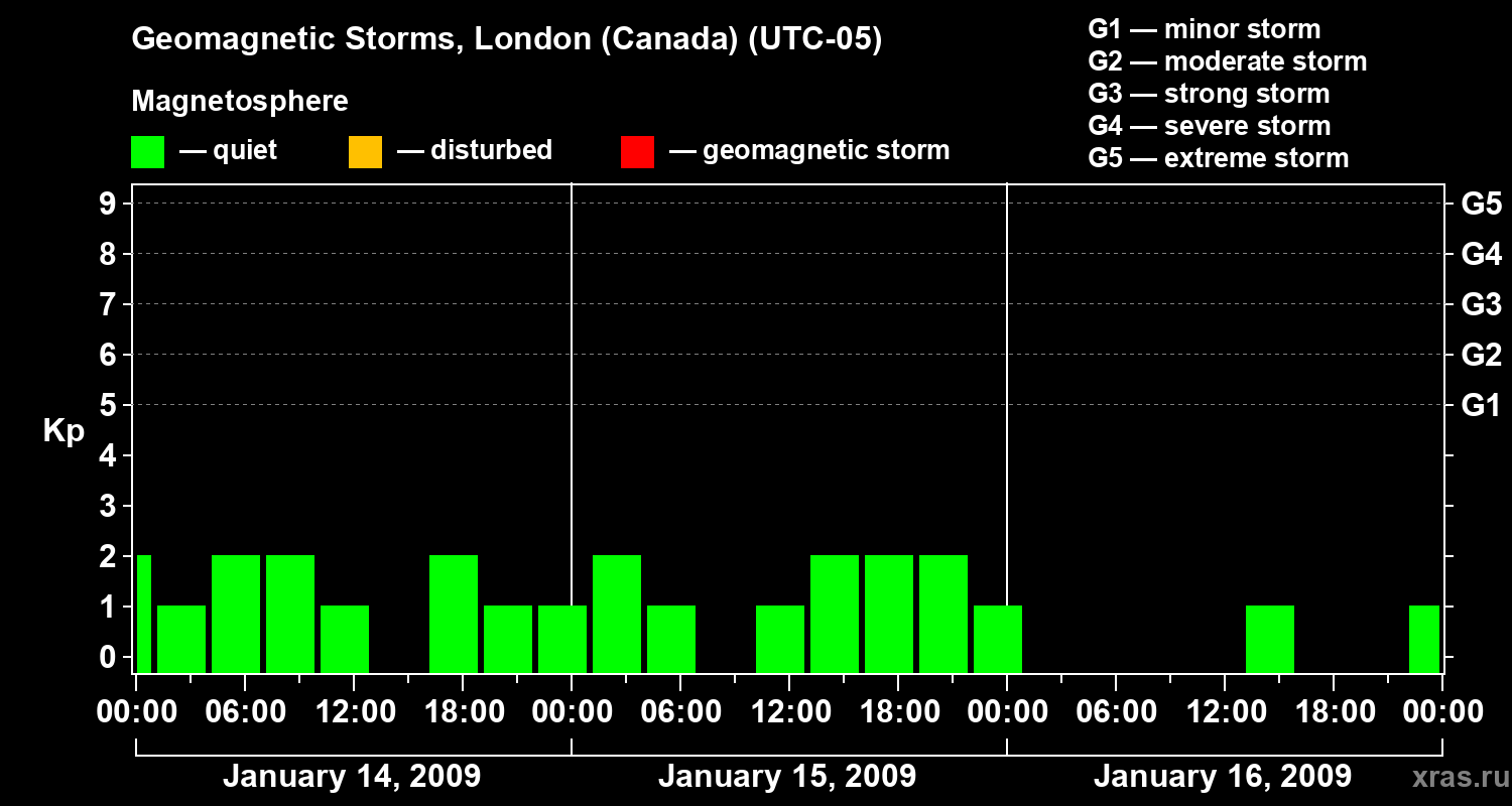 Geomagnetic storms in London (Canada) — Jan 16, 2009