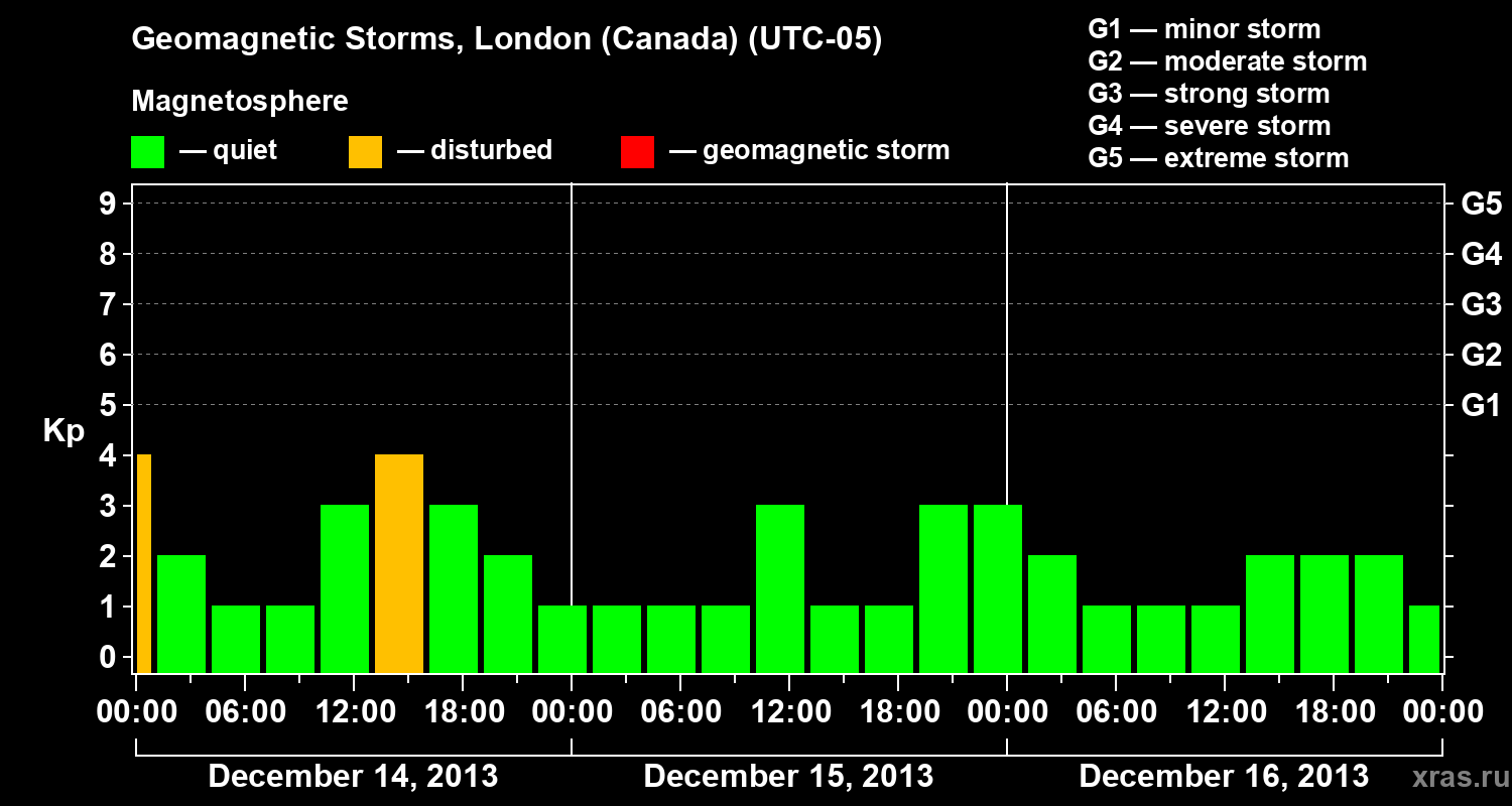 Geomagnetic storms in London (Canada) in December 2013
