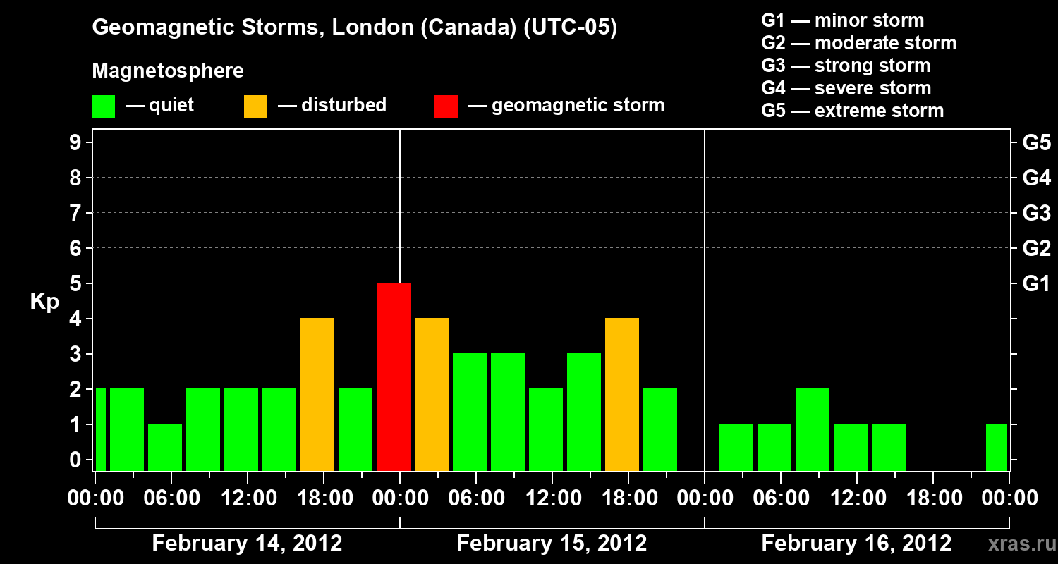 Geomagnetic storms in London (Canada) — Feb 16, 2012