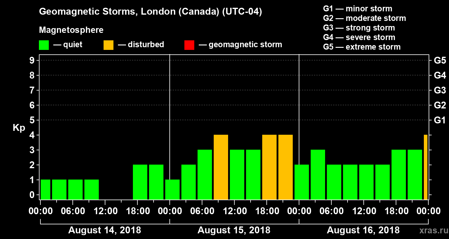 Geomagnetic storms in London (Canada) — Aug 16, 2018