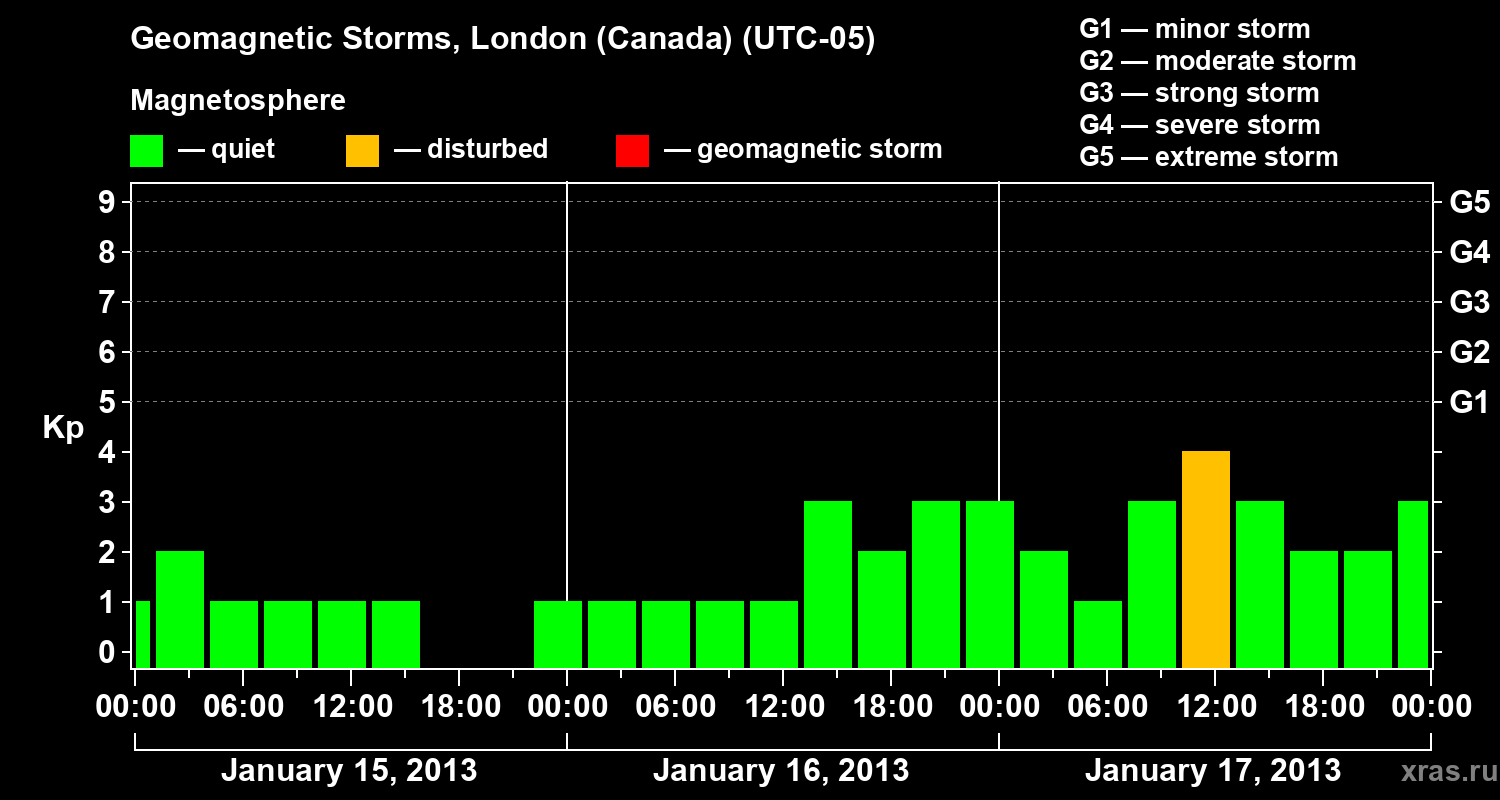 Geomagnetic storms in London (Canada) — Jan 17, 2013