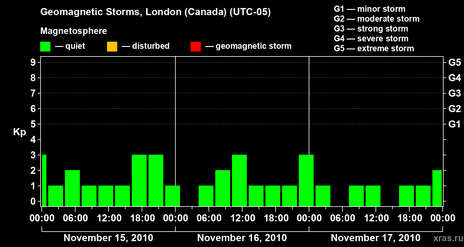 Geomagnetic storms in London (Canada) — Nov 17, 2010