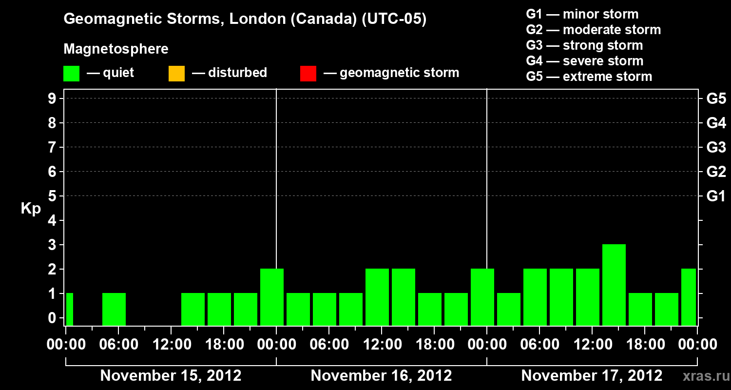 Geomagnetic storms in London (Canada) — Nov 17, 2012