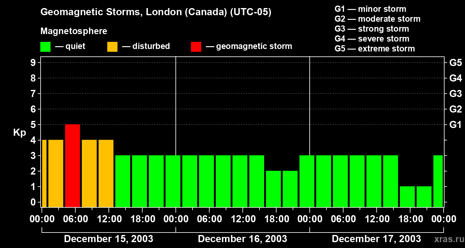 Geomagnetic storms in London (Canada) on Dec 17, 2003