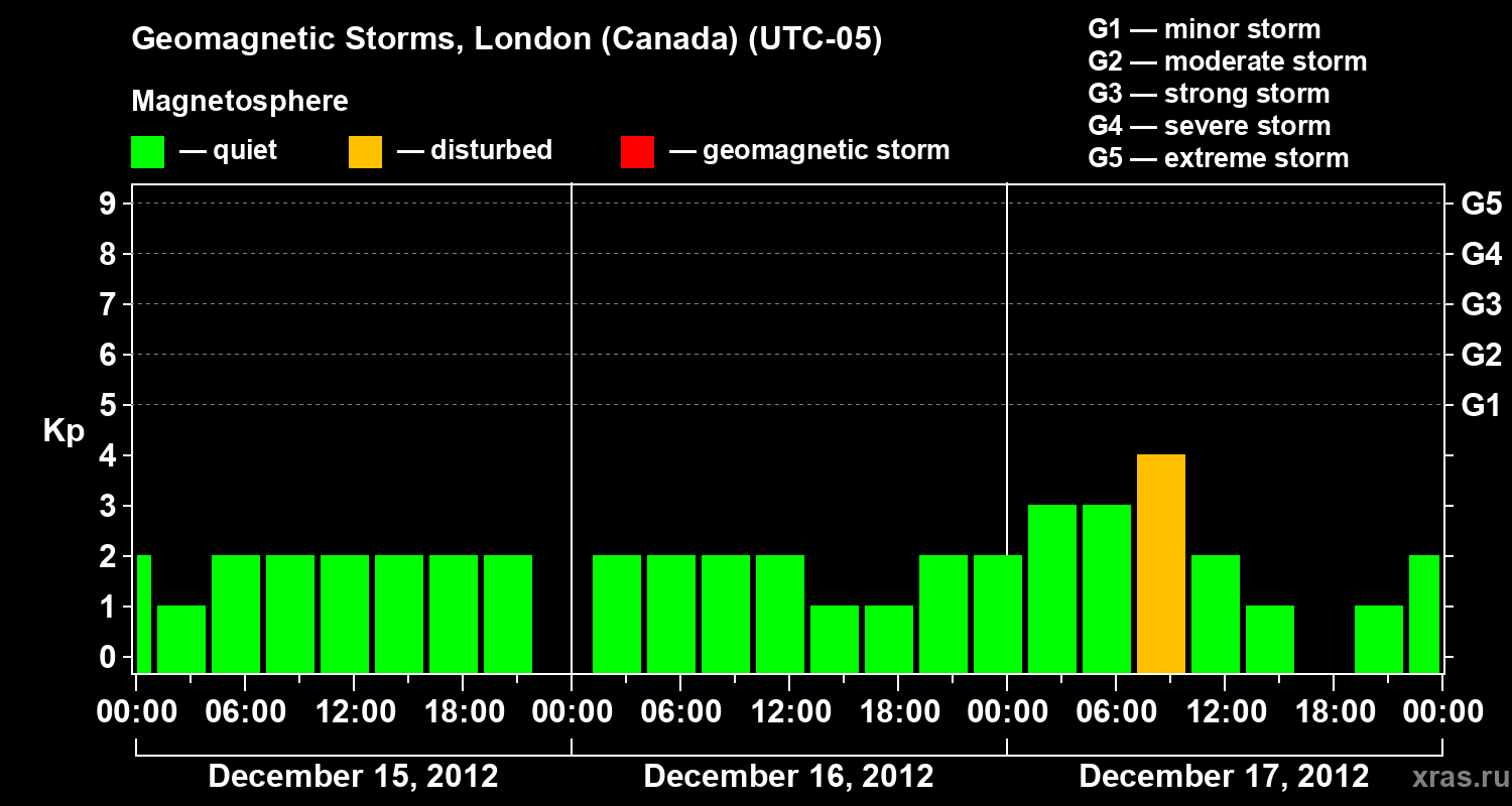 Geomagnetic storms in London (Canada) on Dec 17, 2012
