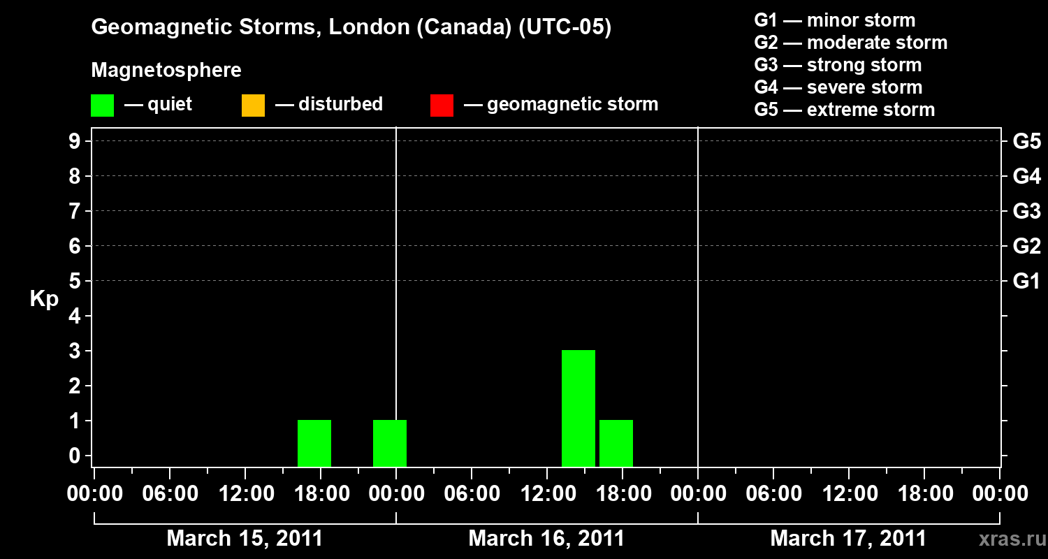 Geomagnetic storms in London (Canada) — Mar 17, 2011