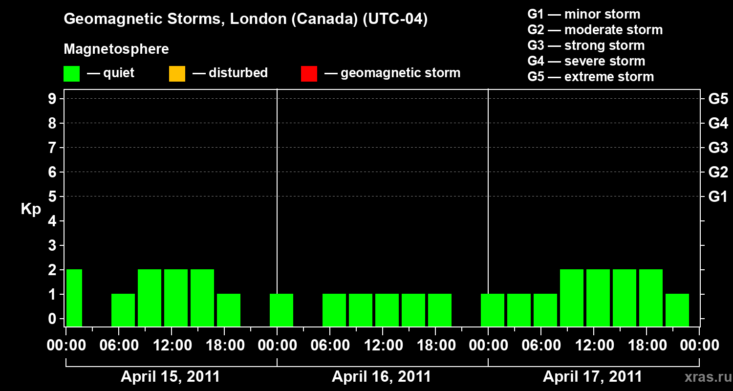 Geomagnetic storms in London (Canada) — Apr 17, 2011