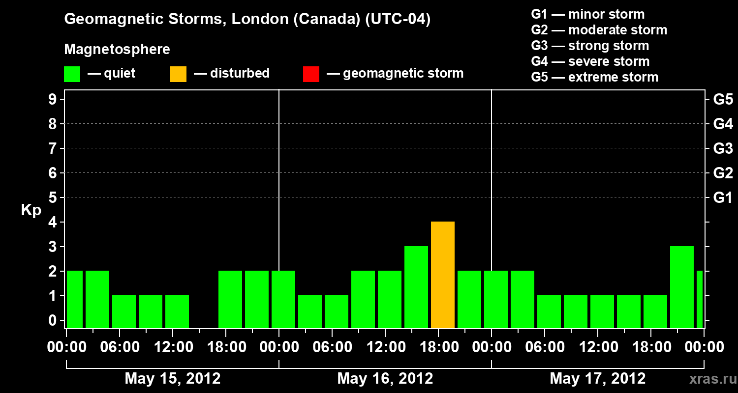 Geomagnetic storms in London (Canada) — May 17, 2012