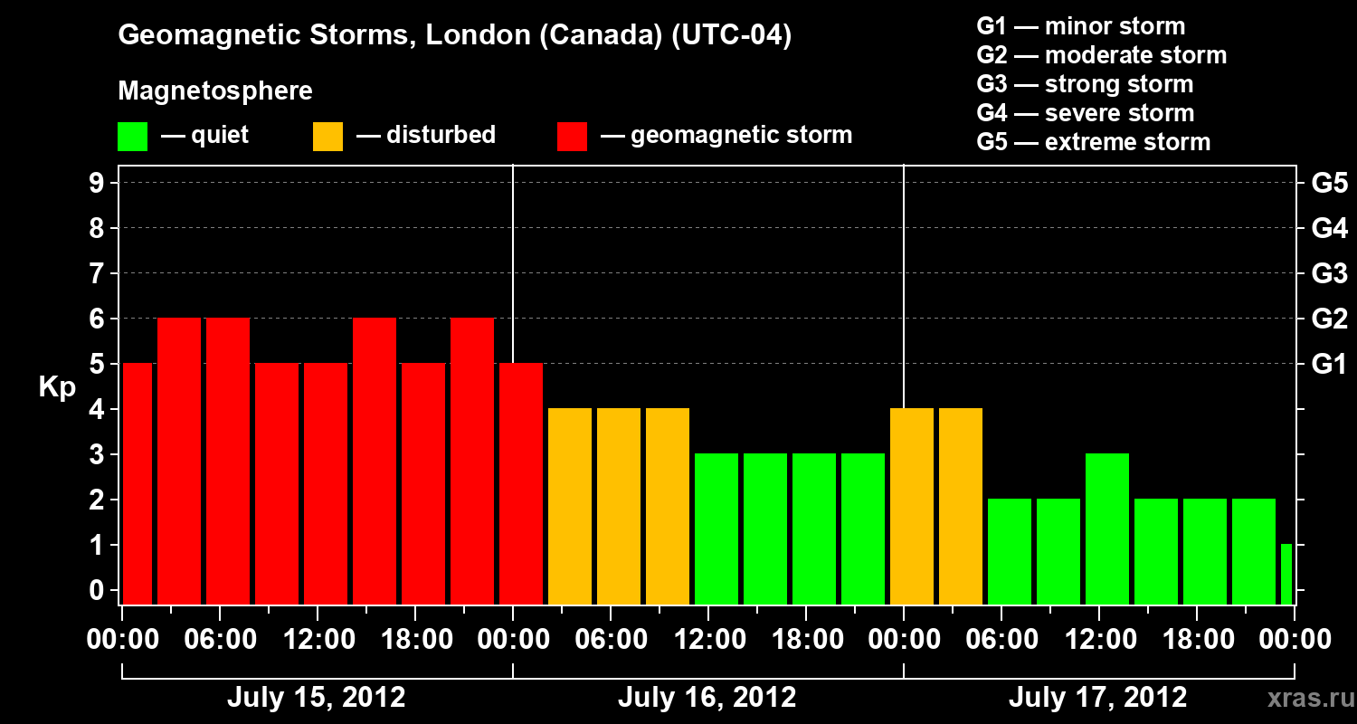 Geomagnetic storms in London (Canada) — Jul 17, 2012