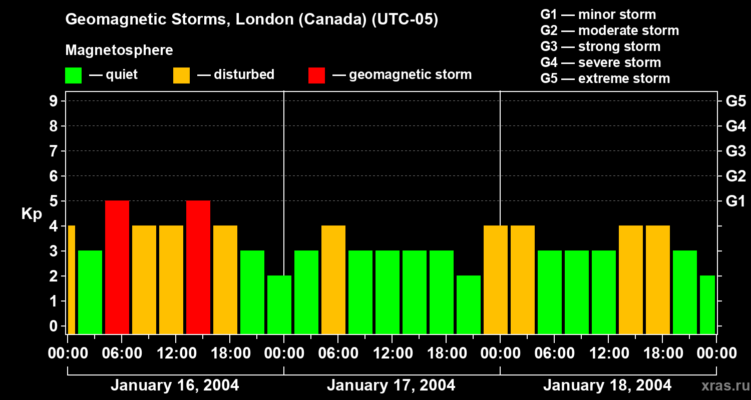 Geomagnetic storms in London (Canada) on Jan 18, 2004