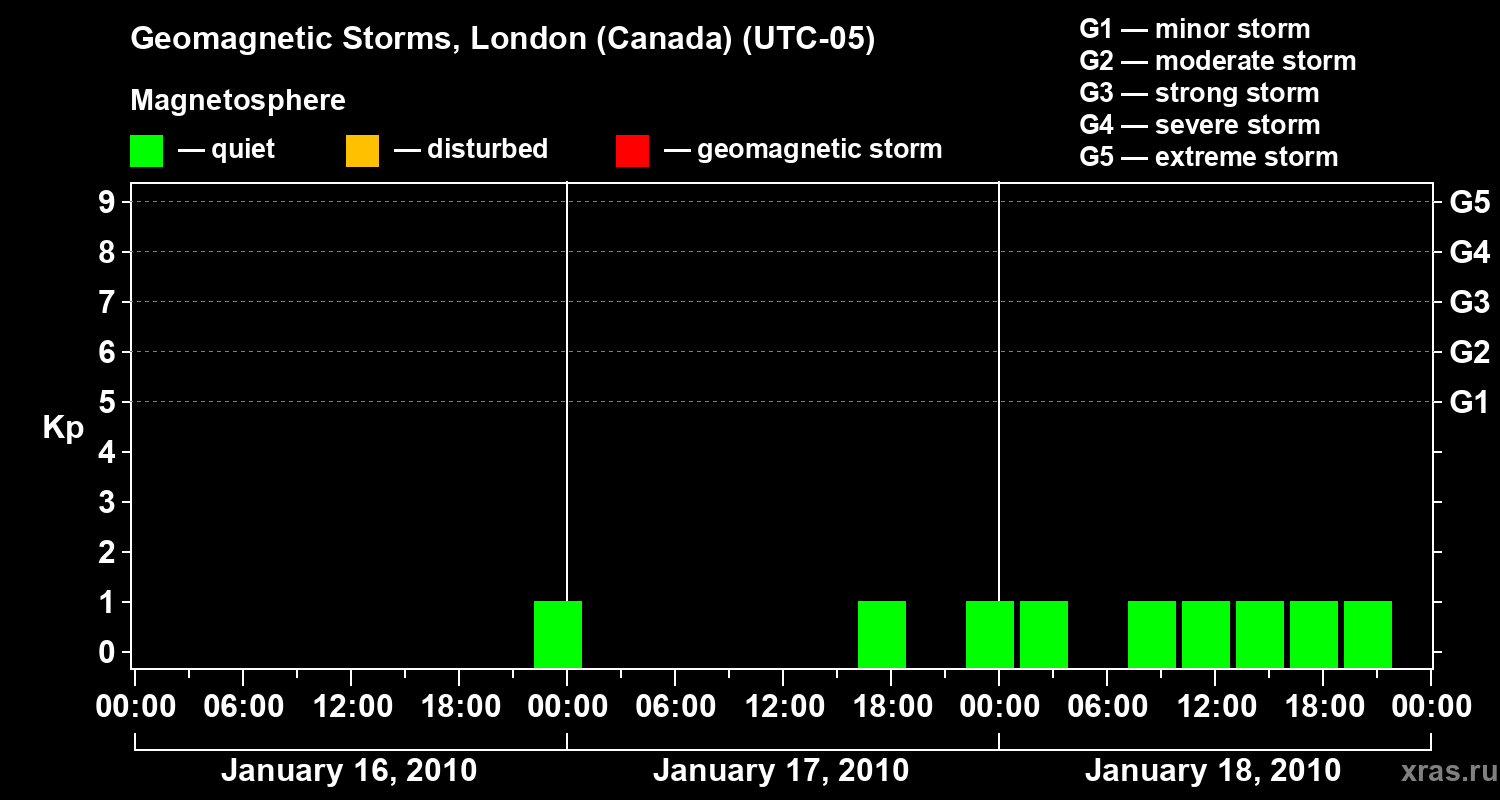 Geomagnetic storms in London (Canada) on Jan 18, 2010