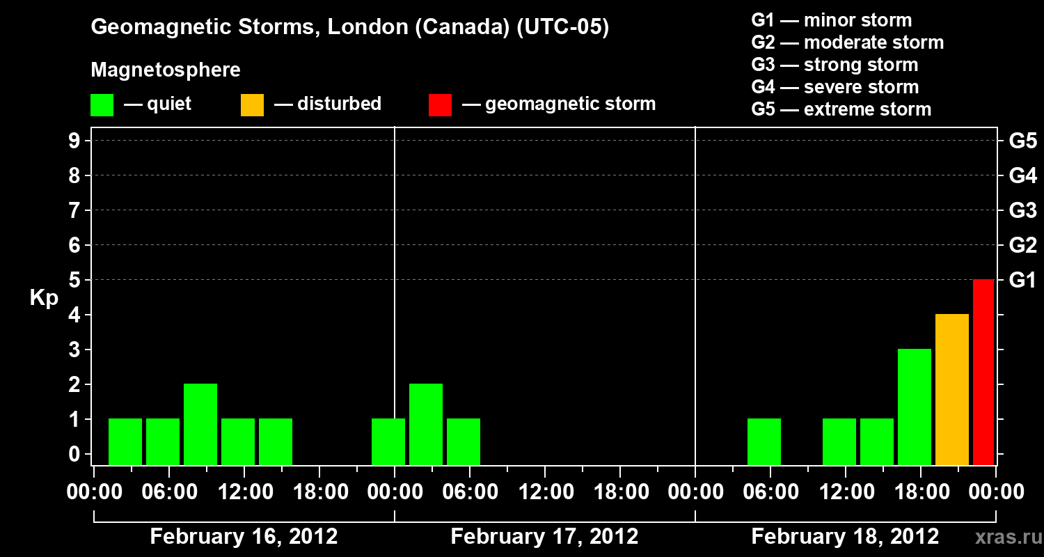 Geomagnetic storms in London (Canada) — Feb 18, 2012