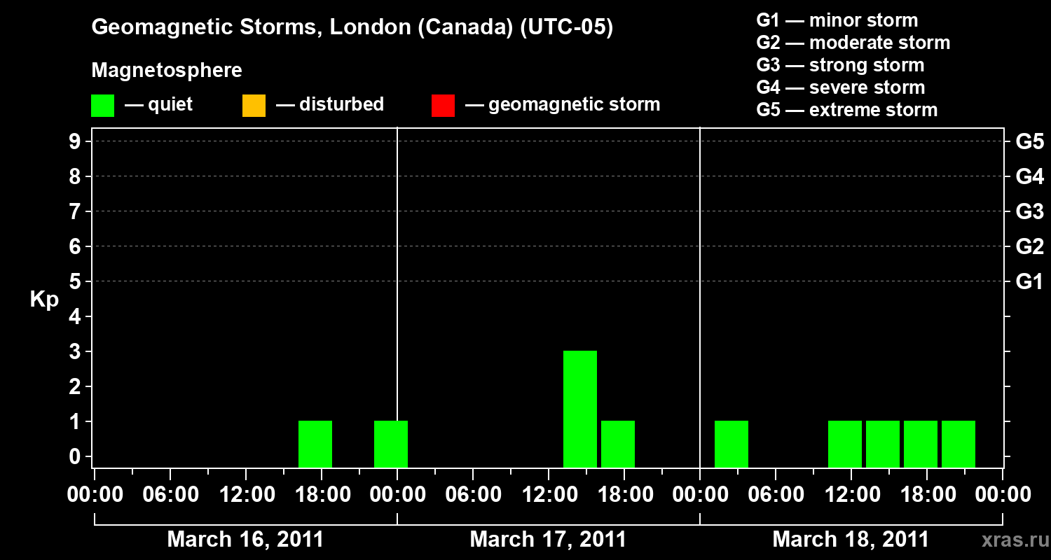 Geomagnetic storms in London (Canada) on Mar 18, 2011