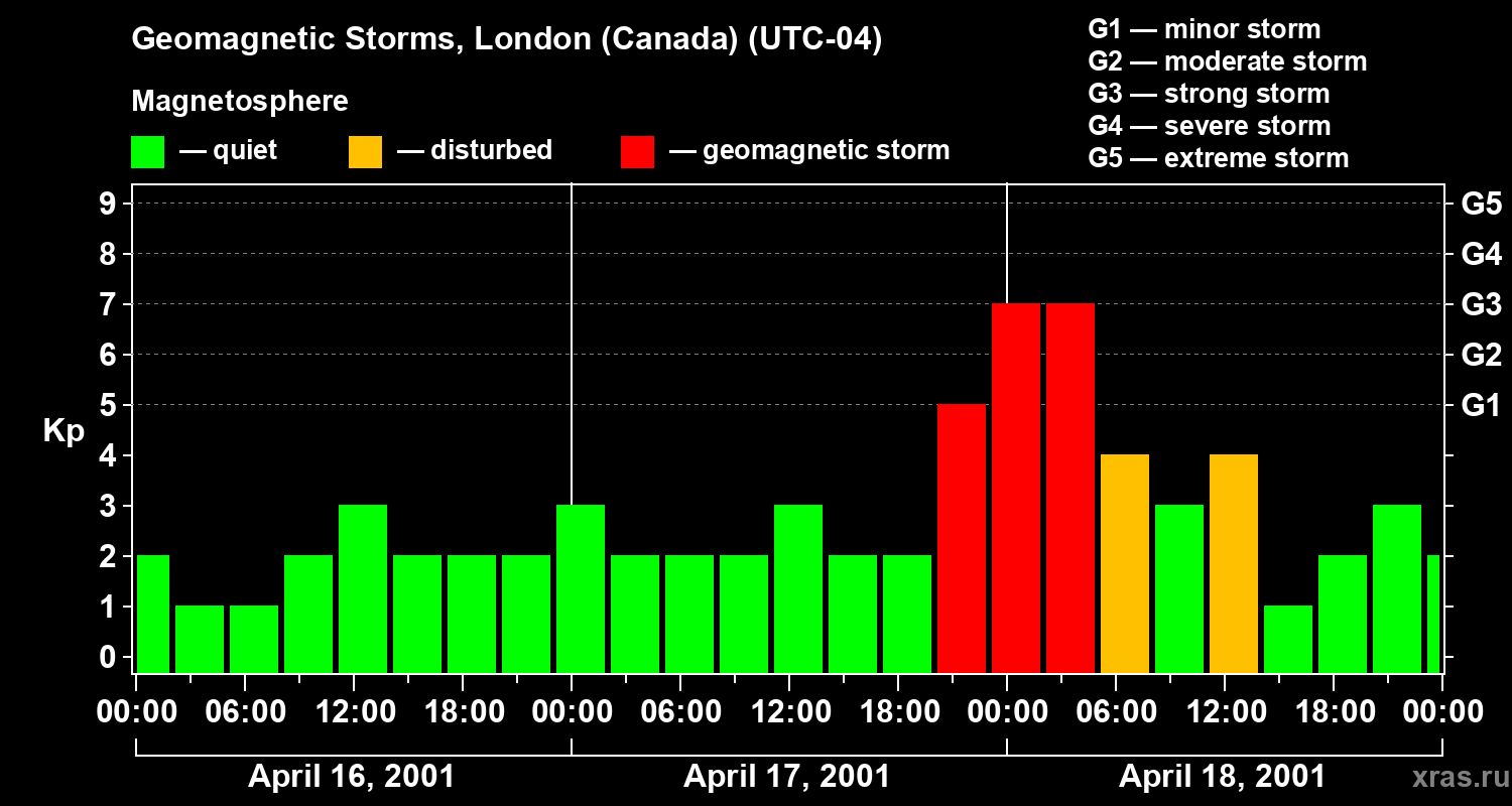 Geomagnetic storms in London (Canada) — Apr 18, 2001