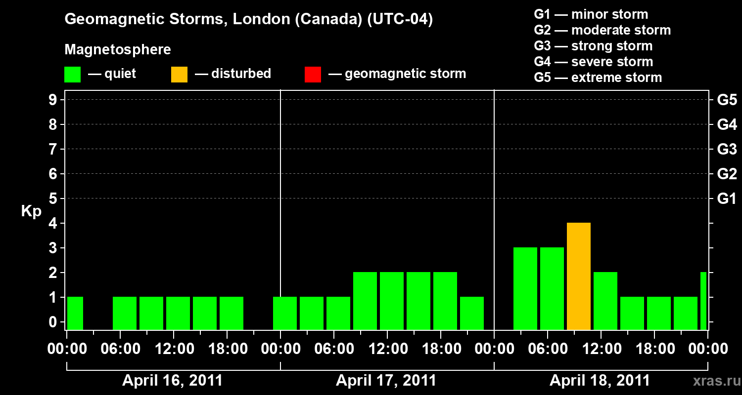 Geomagnetic storms in London (Canada) — Apr 18, 2011