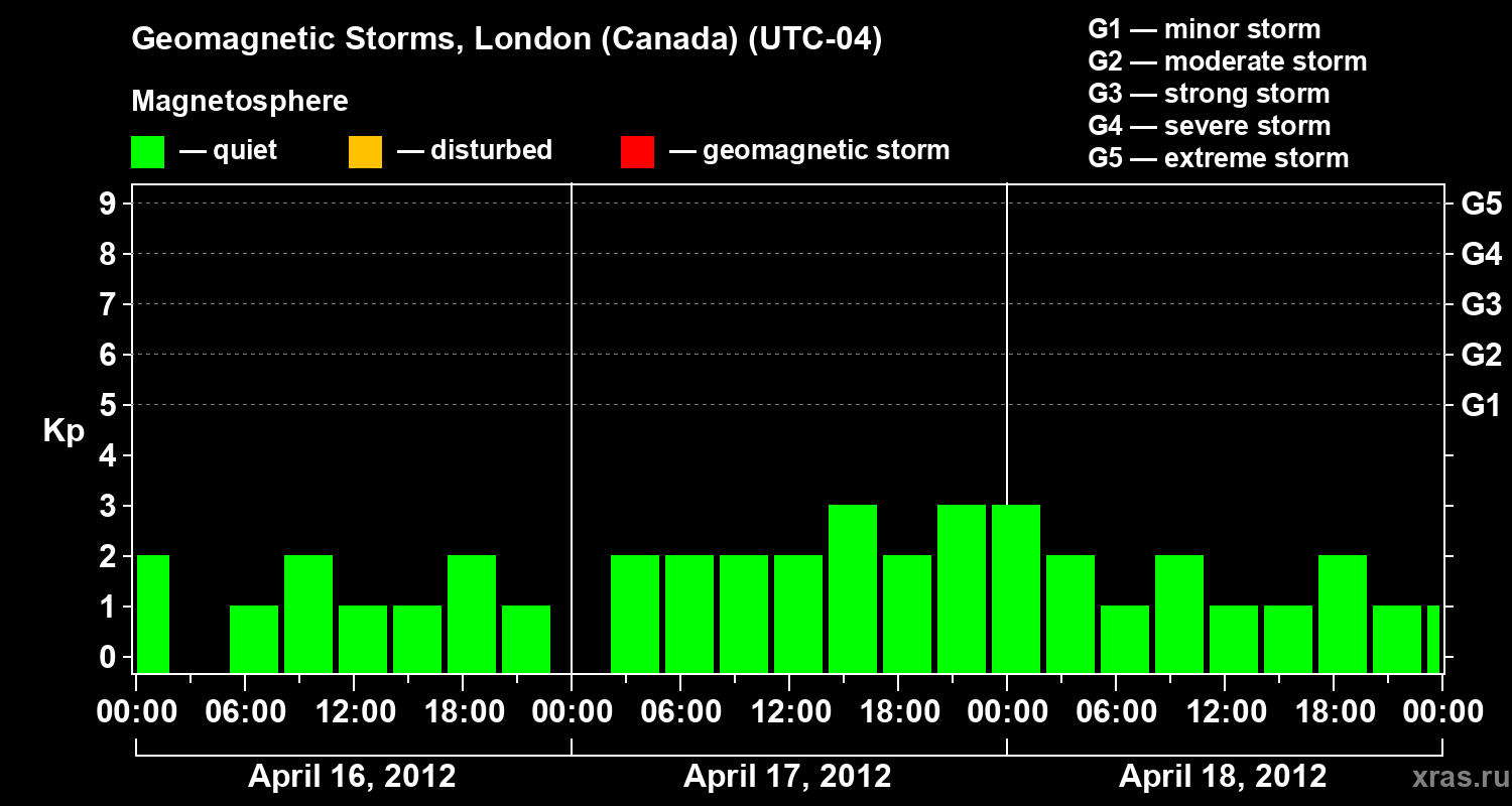 Geomagnetic storms in London (Canada) — Apr 18, 2012