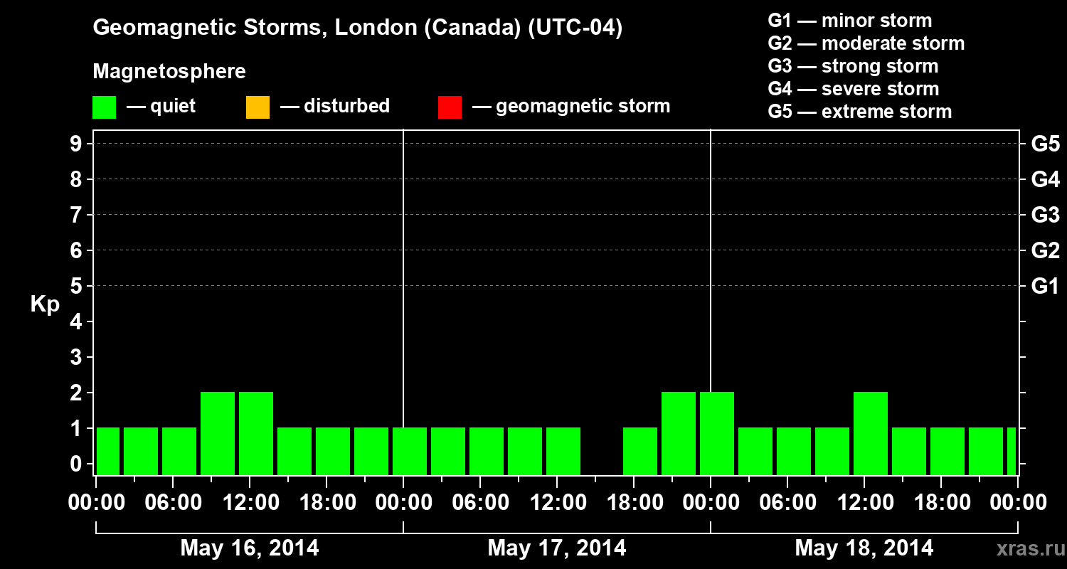 Geomagnetic storms in London (Canada) — May 18, 2014