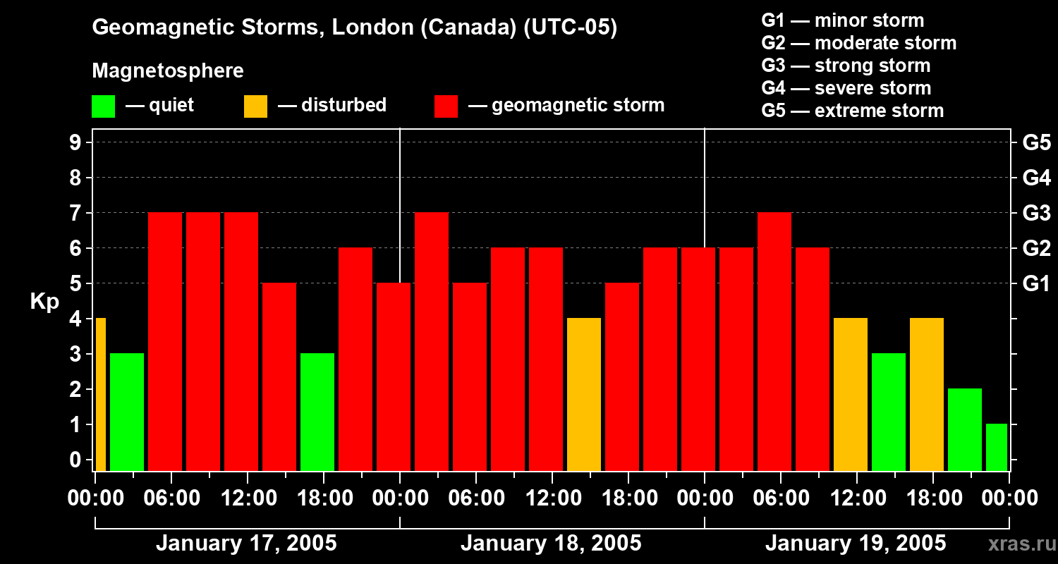 Geomagnetic storms in London (Canada) on Jan 19, 2005