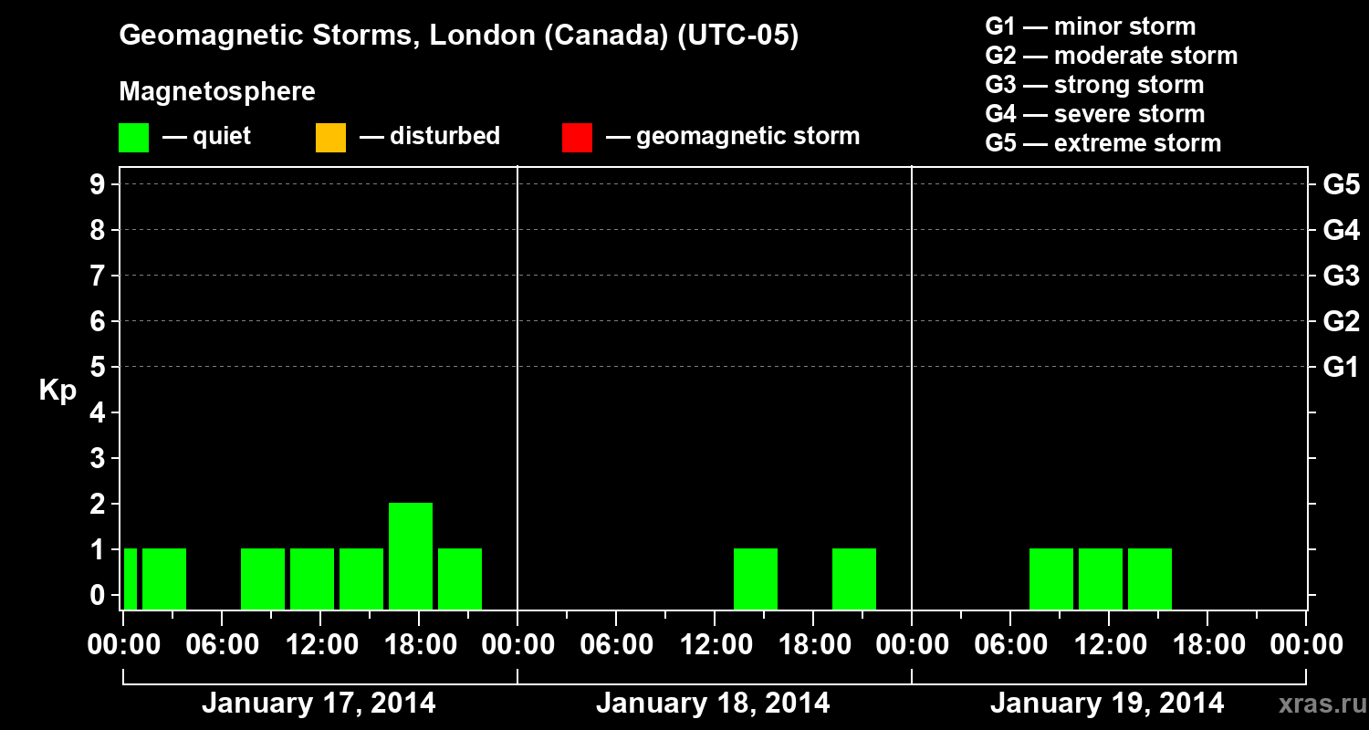 Geomagnetic storms in London (Canada) — Jan 19, 2014