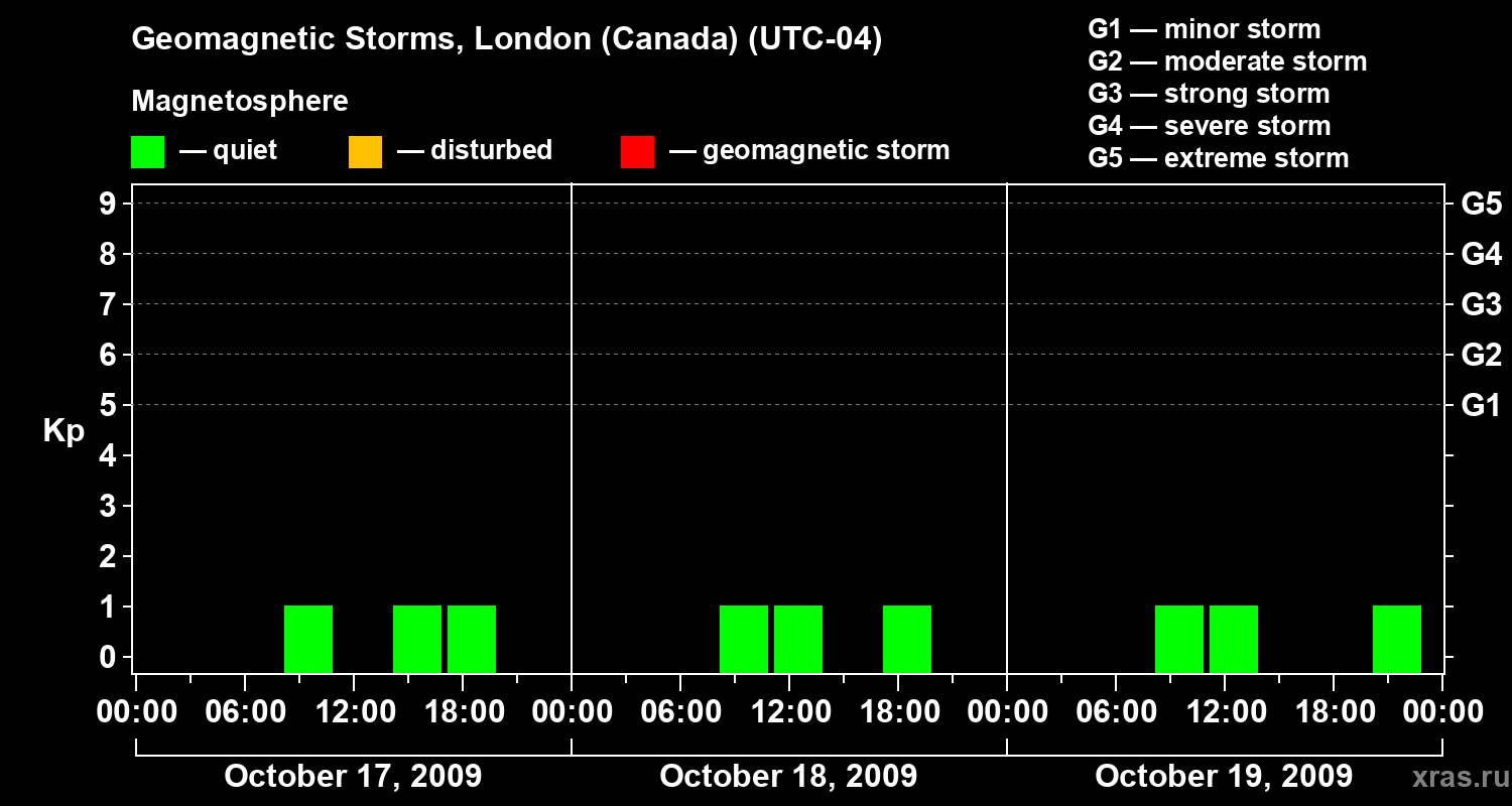 Geomagnetic storms in London (Canada) — Oct 19, 2009