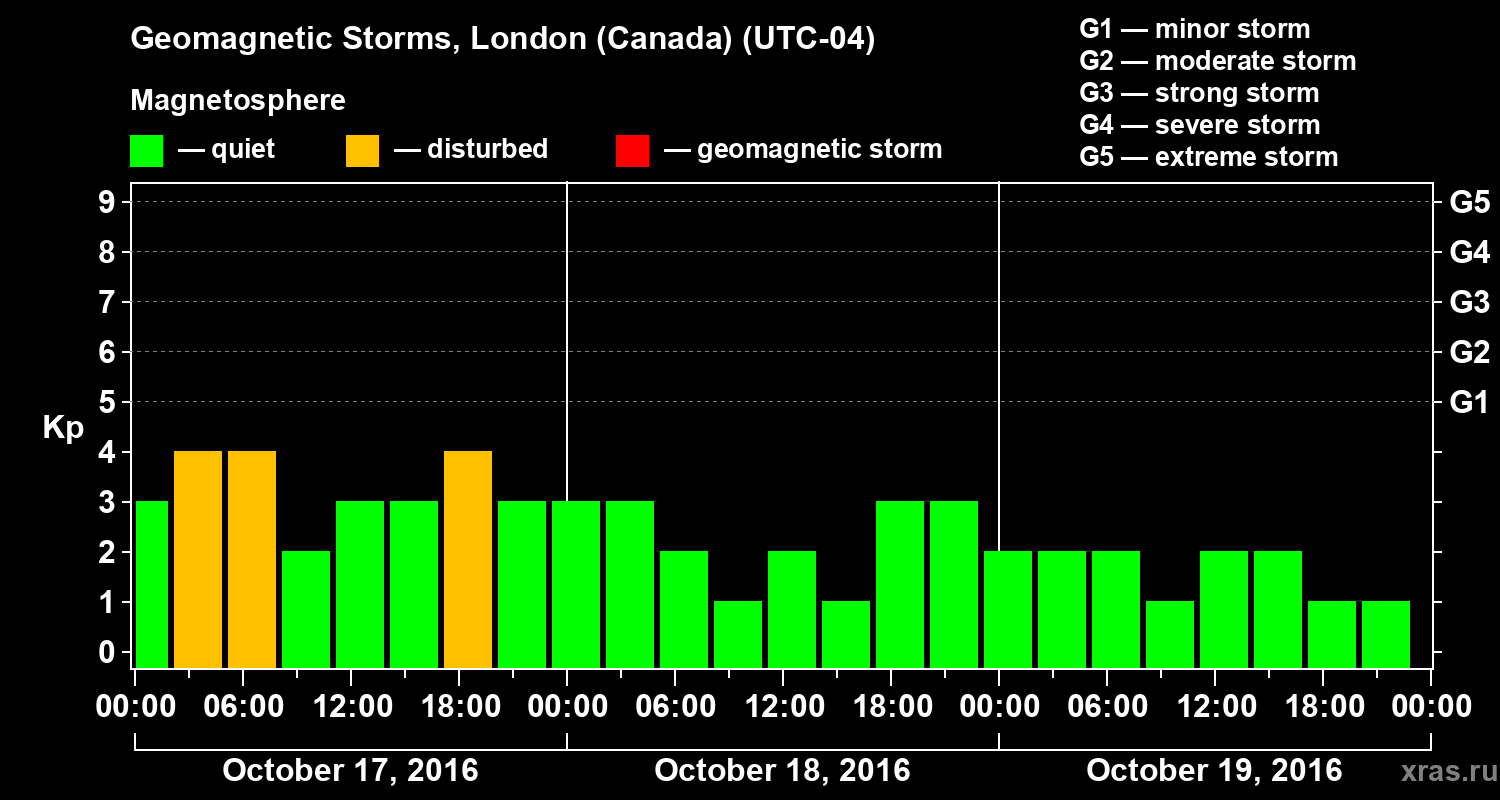 Geomagnetic storms in London (Canada) — Oct 19, 2016