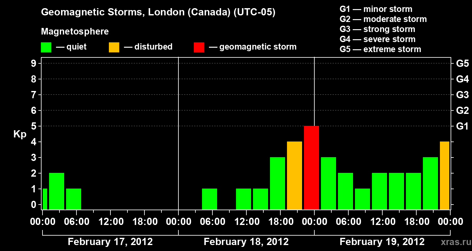 Geomagnetic storms in London (Canada) — Feb 19, 2012