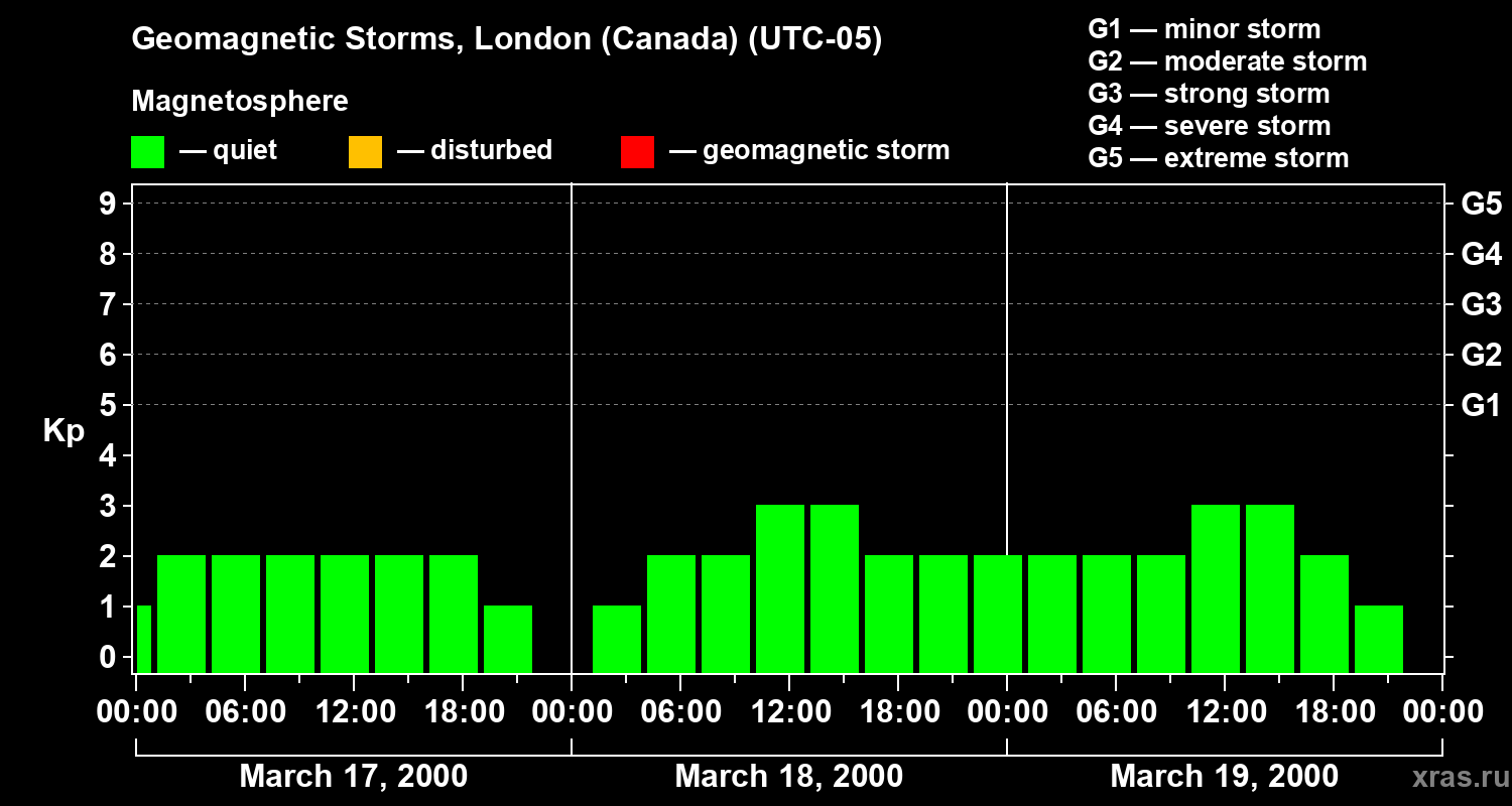 Geomagnetic storms in London (Canada) — Mar 19, 2000