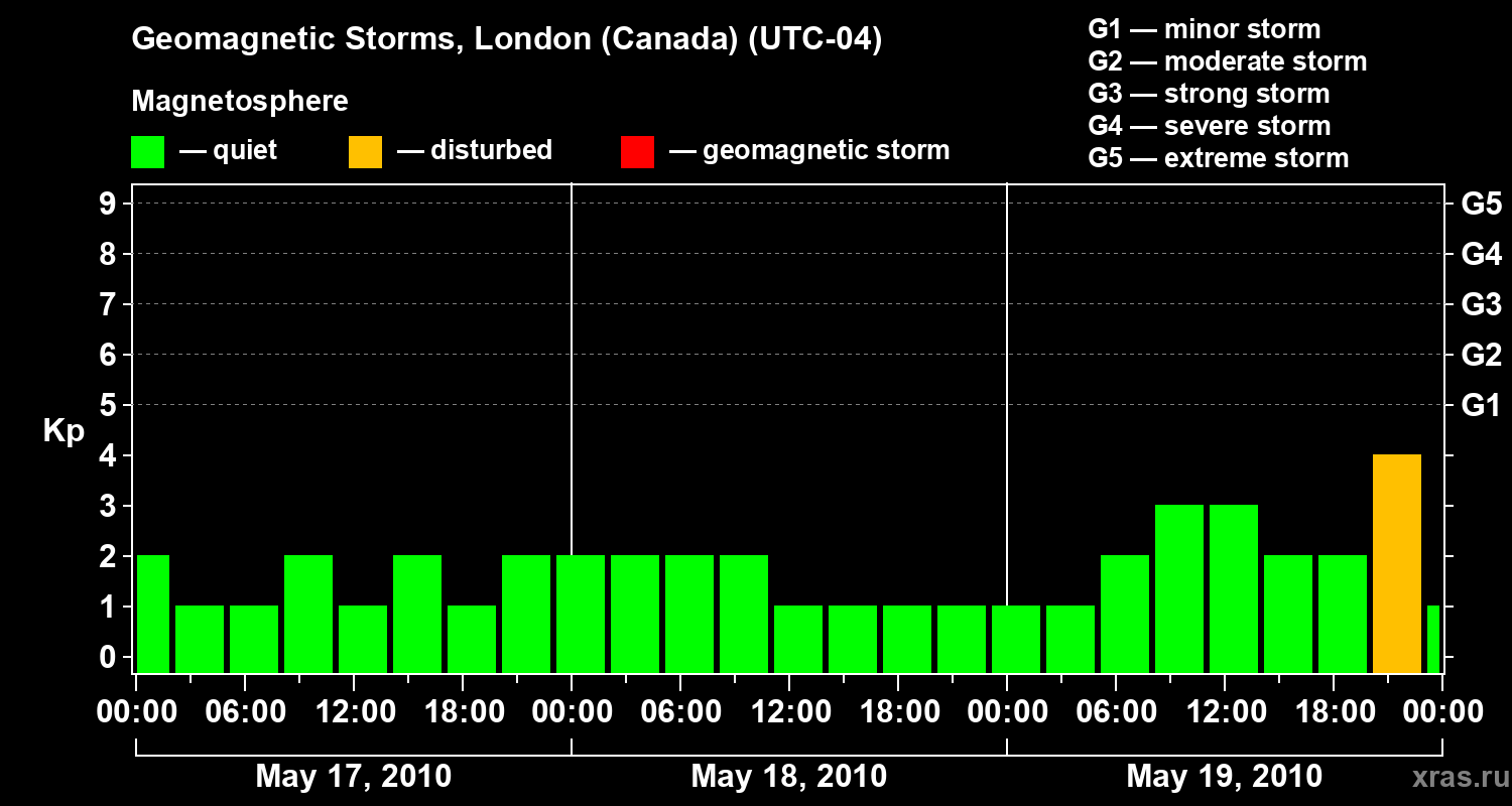 Geomagnetic storms in London (Canada) on May 19, 2010
