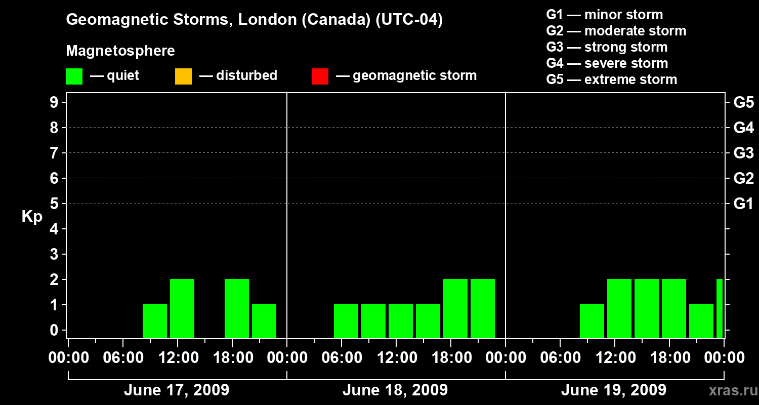 Geomagnetic storms in London (Canada) — Jun 19, 2009