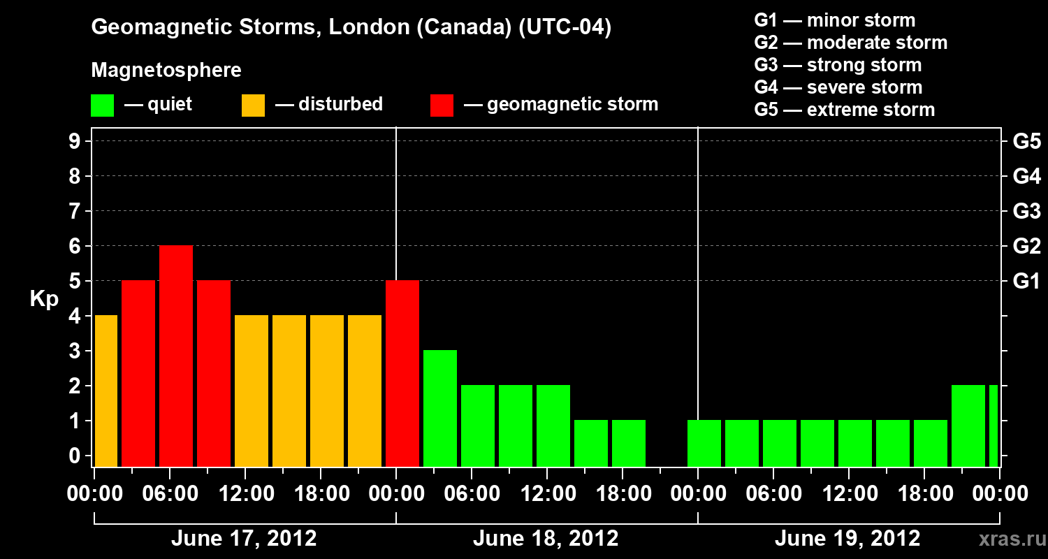 Geomagnetic storms in London (Canada) — Jun 19, 2012