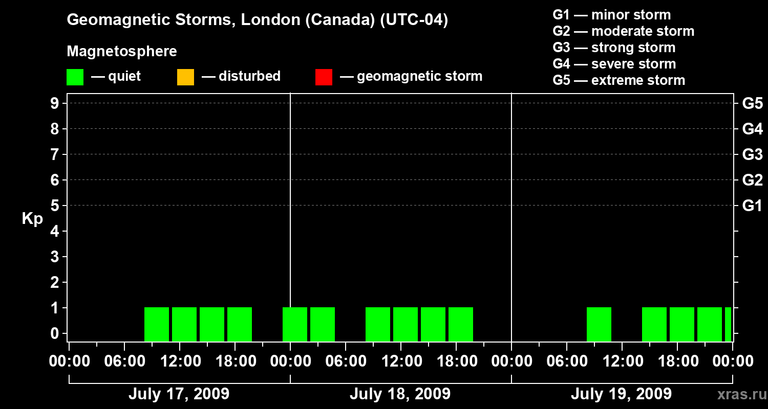 Geomagnetic storms in London (Canada) — Jul 19, 2009