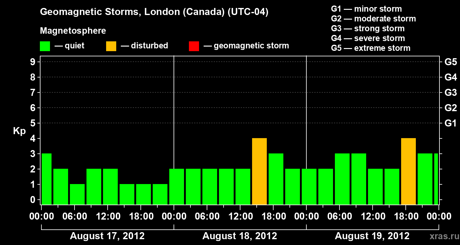 Geomagnetic storms in London (Canada) — Aug 19, 2012