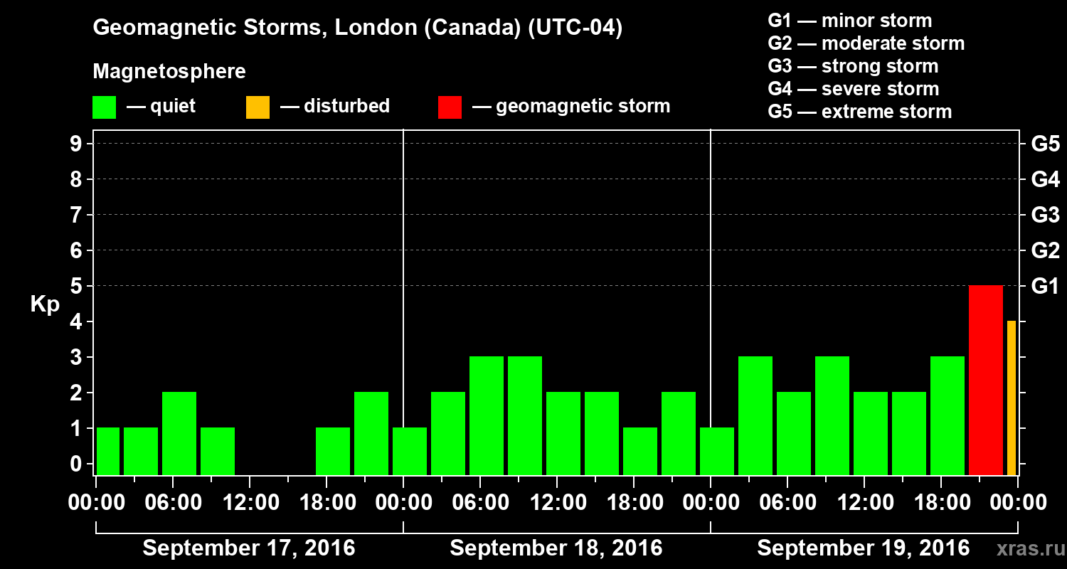 Geomagnetic storms in London (Canada) — Sep 19, 2016