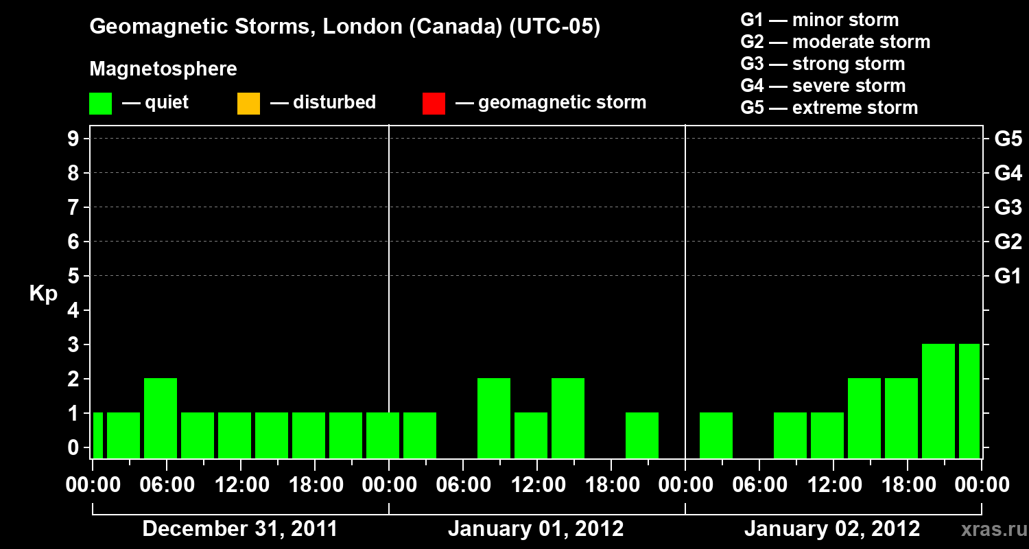 Geomagnetic storms in London (Canada) — Jan 02, 2012