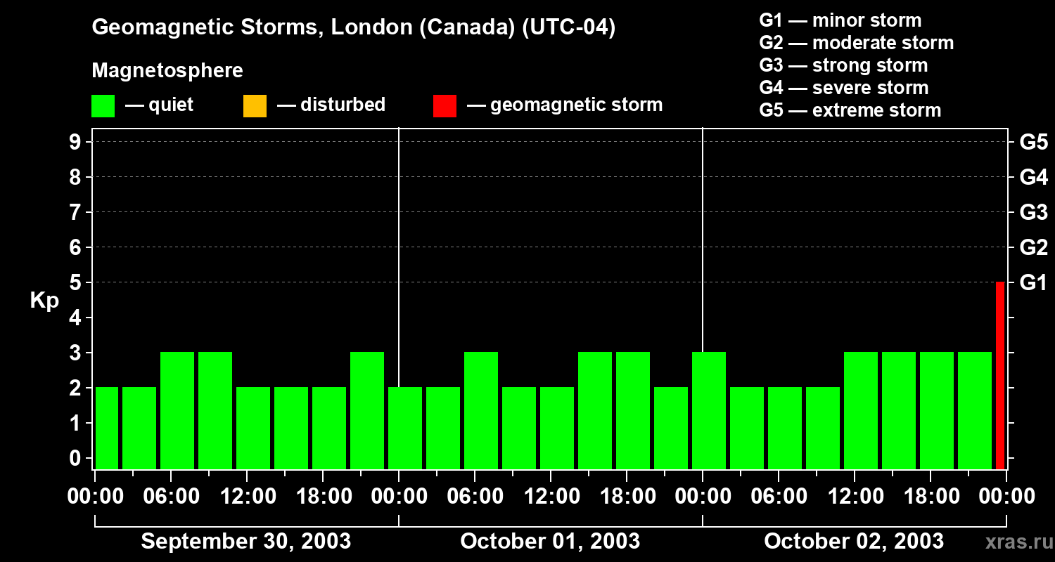 Geomagnetic storms in London (Canada) on Oct 02, 2003