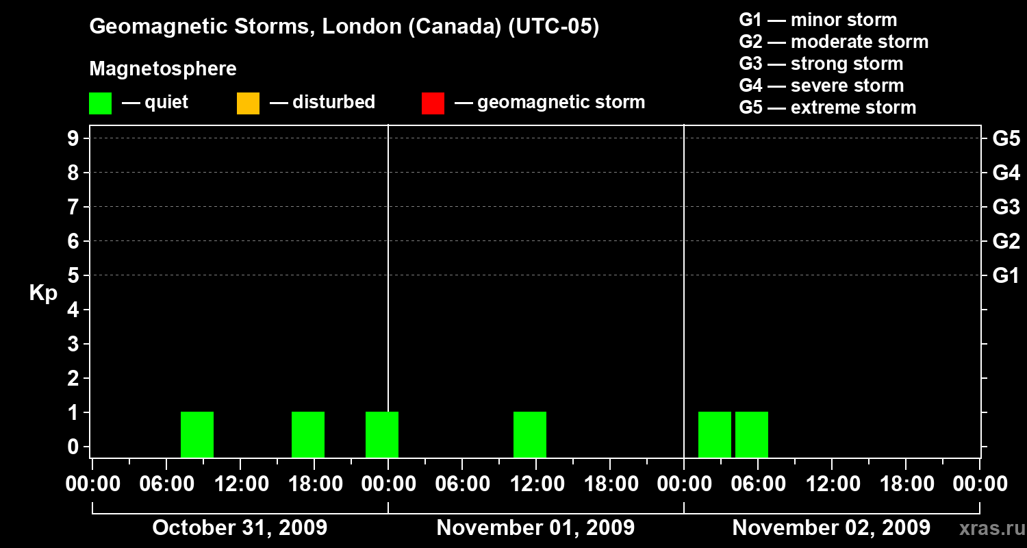 Geomagnetic storms in London (Canada) — Nov 02, 2009