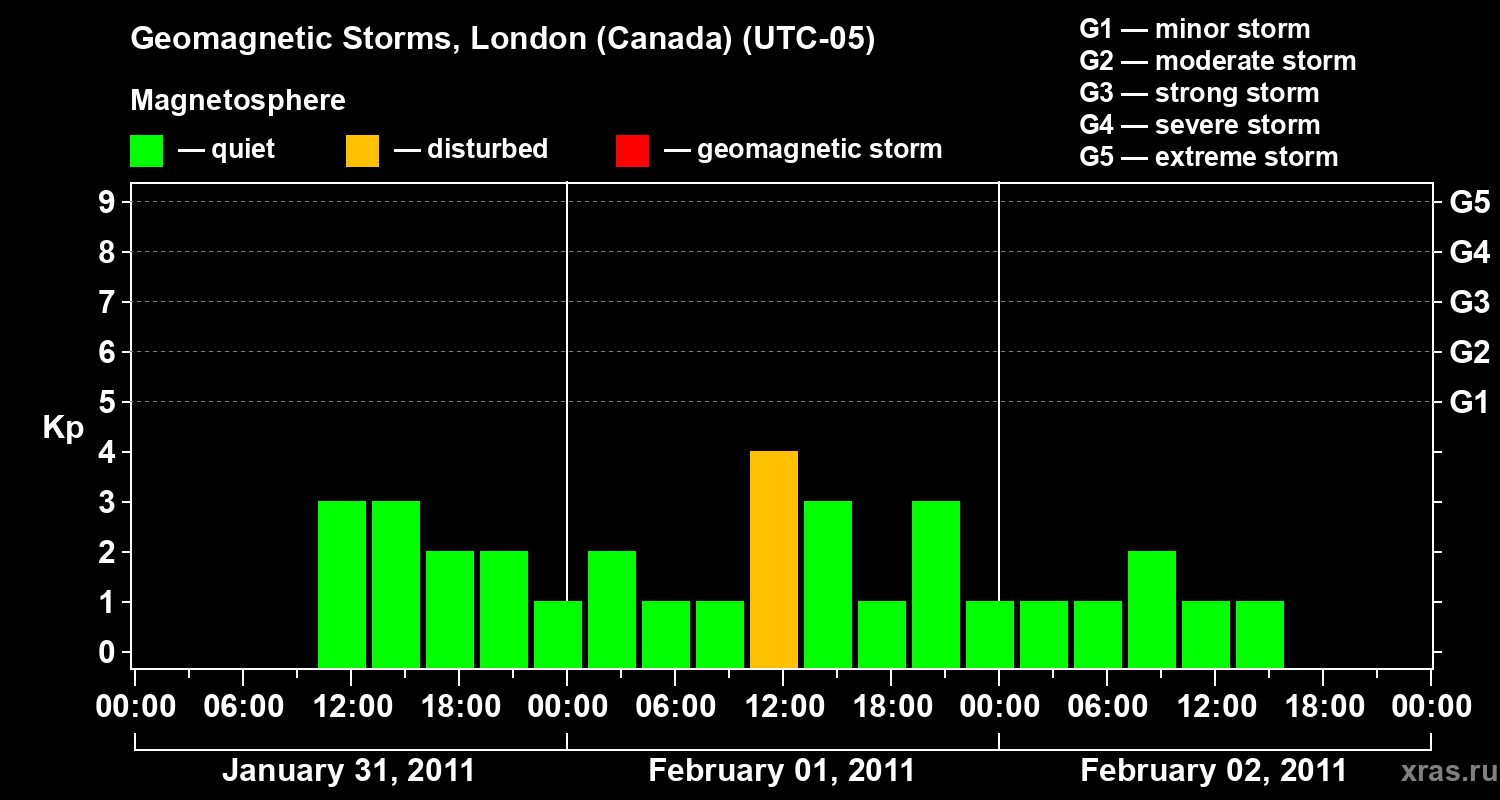 Geomagnetic storms in London (Canada) — Feb 02, 2011