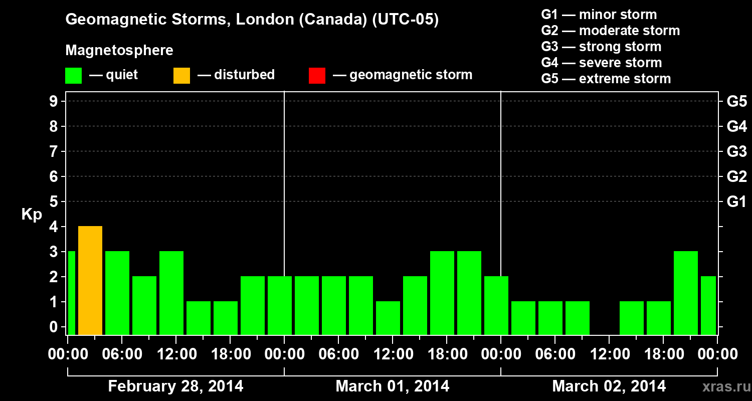 Geomagnetic storms in London (Canada) — Mar 02, 2014
