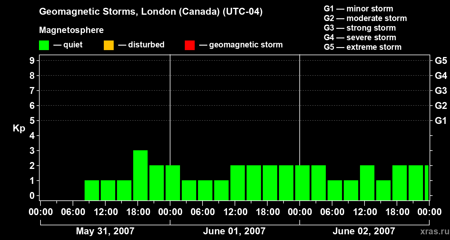 Geomagnetic storms in London (Canada) — Jun 02, 2007