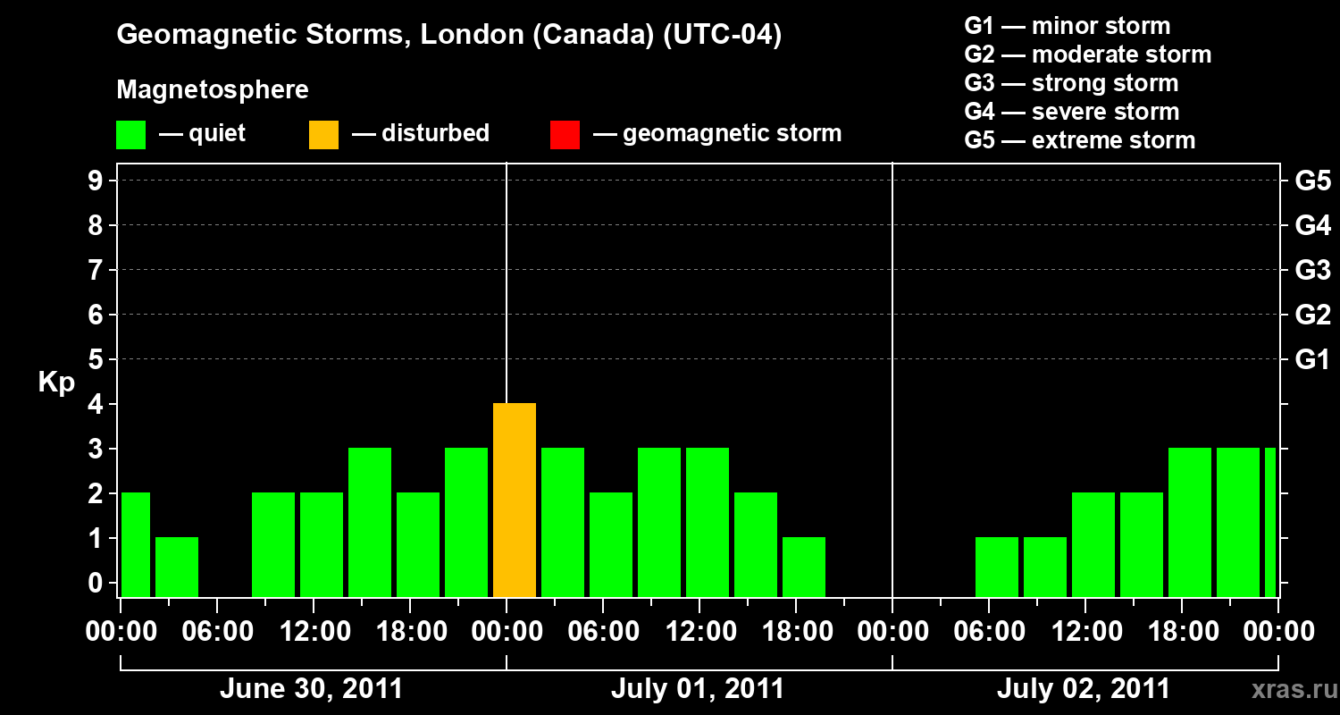 Geomagnetic storms in London (Canada) on Jul 02, 2011