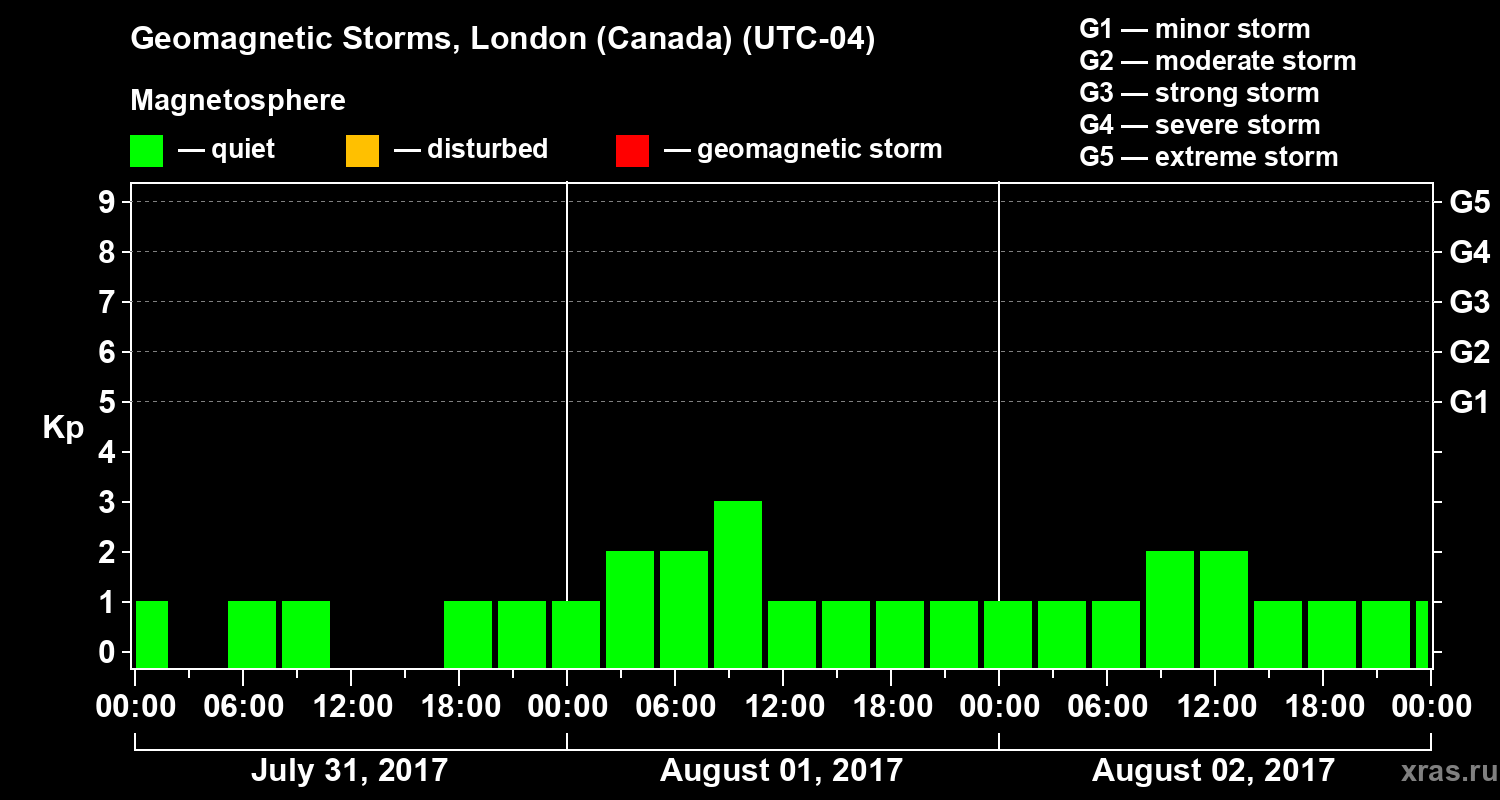 Geomagnetic storms in London (Canada) — Aug 02, 2017