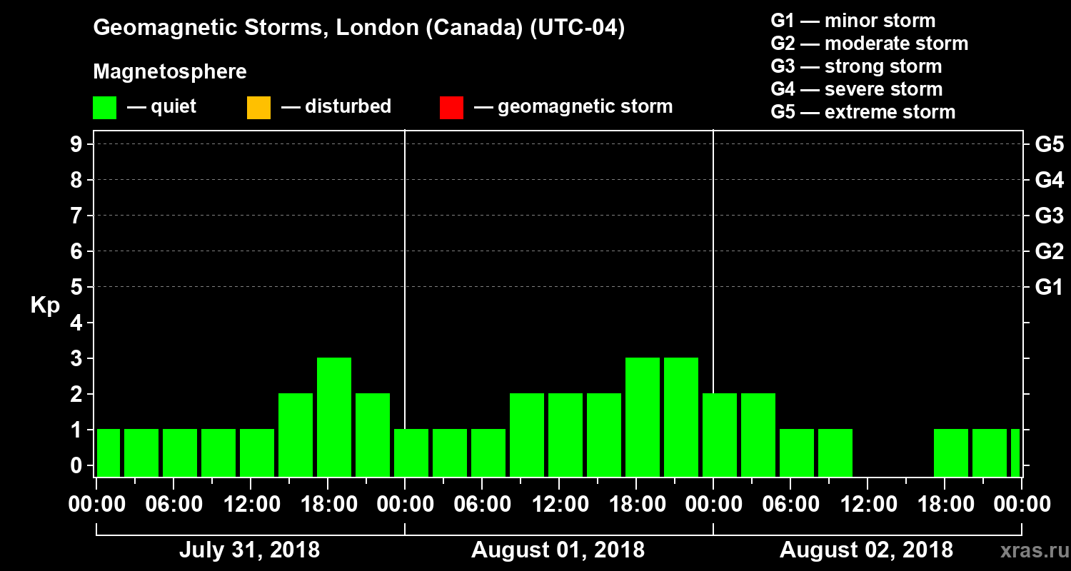 Geomagnetic storms in London (Canada) — Aug 02, 2018