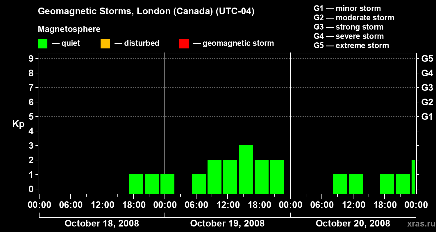 Geomagnetic storms in London (Canada) — Oct 20, 2008