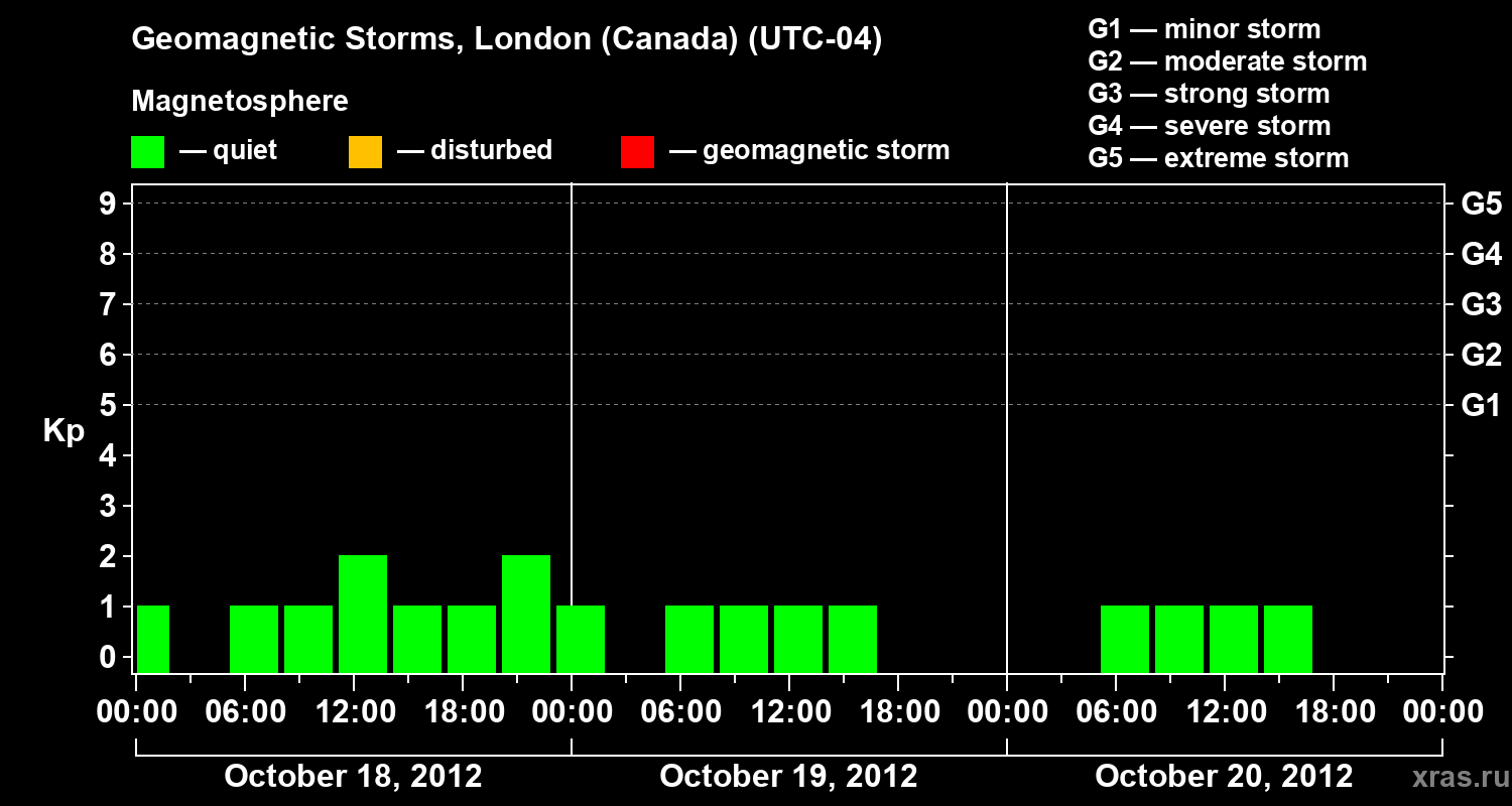 Geomagnetic storms in London (Canada) on Oct 20, 2012