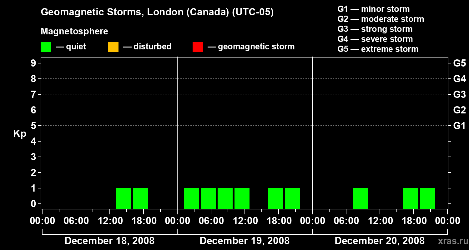 Geomagnetic storms in London (Canada) — Dec 20, 2008