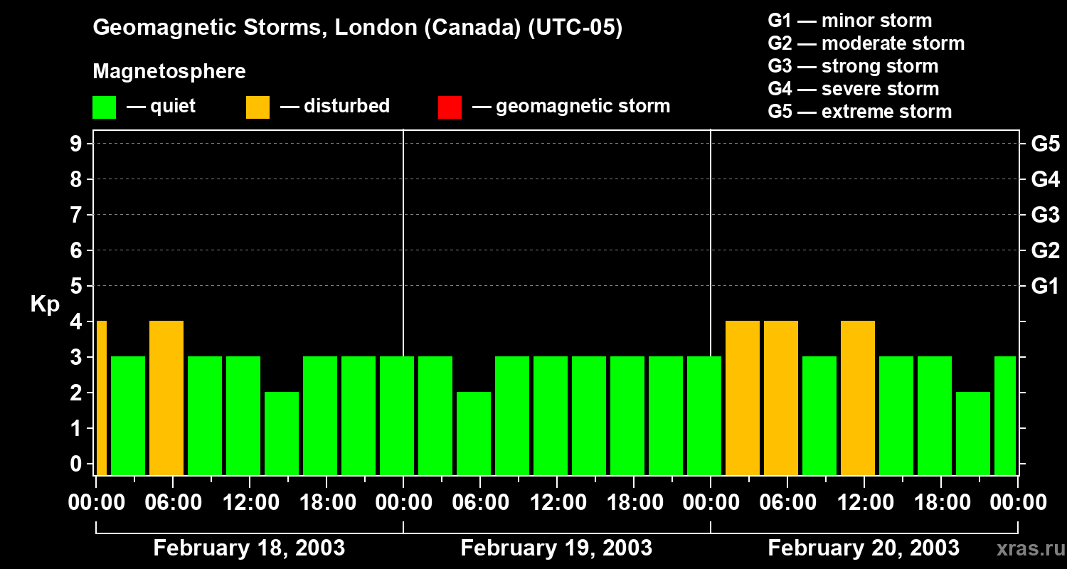 Geomagnetic storms in London (Canada) — Feb 20, 2003