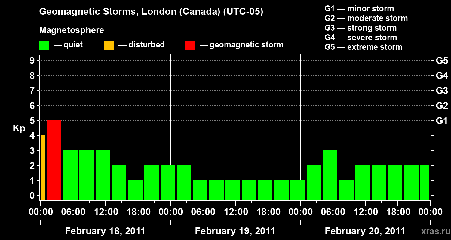 Geomagnetic storms in London (Canada) — Feb 20, 2011